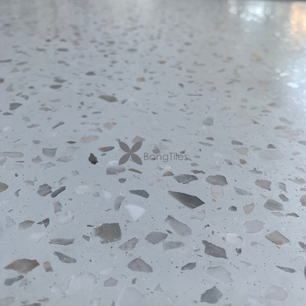 Large sized concrete authentic Terrazzo tiles, the high end product line of BongTiles factory, are finished manually after going through a modern and high pressure production line. Thanks to high pressure, BongTiles large sized concrete authentic terrazzo tiles ensure absolutely no warping, no thread cracking, accurate size making the lining work easier and ensuring the quality and aesthetics of the project. BongTiles factory has developed a product line that we still know as “granito” to a new level, a modern architectural trend that is popular today. The large sized concrete authentic terrazzo tiles which BongTiles are producing have the size up to 600mm or more and the minimum thickness of 14mm. Therefore, BongTiles large sized concrete authentic terrazzo tiles can be used for wall cladding or flooring, which will surely bring you a new, unique and seamless product.